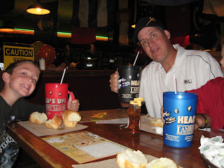 We finally got to our place when it was dark, because we had lost 2 hours traveling East. Brett wanted to know when we would make up those 2 hours of his life that he lost, he was actually upset. Anyway, we got ourself this cool looking cabin that had two bedrooms, a kitchen and dining room and family room, so the boys were really excited. I was too!