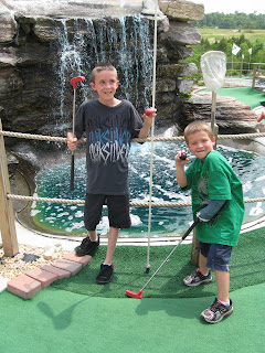 We visited a Fun amusement parks called Silver Dollar City. They had some fun roller coasters as well as little shops and exhibits portraying the Ozark way of life back in the 1900's. All of the park attendants wear period clothing. Josh was a little leary of the rides, so he stayed clear. The only one he wanted to go on was the log ride! I went on it once and got soaked. The boys and Mike went on it a second time.